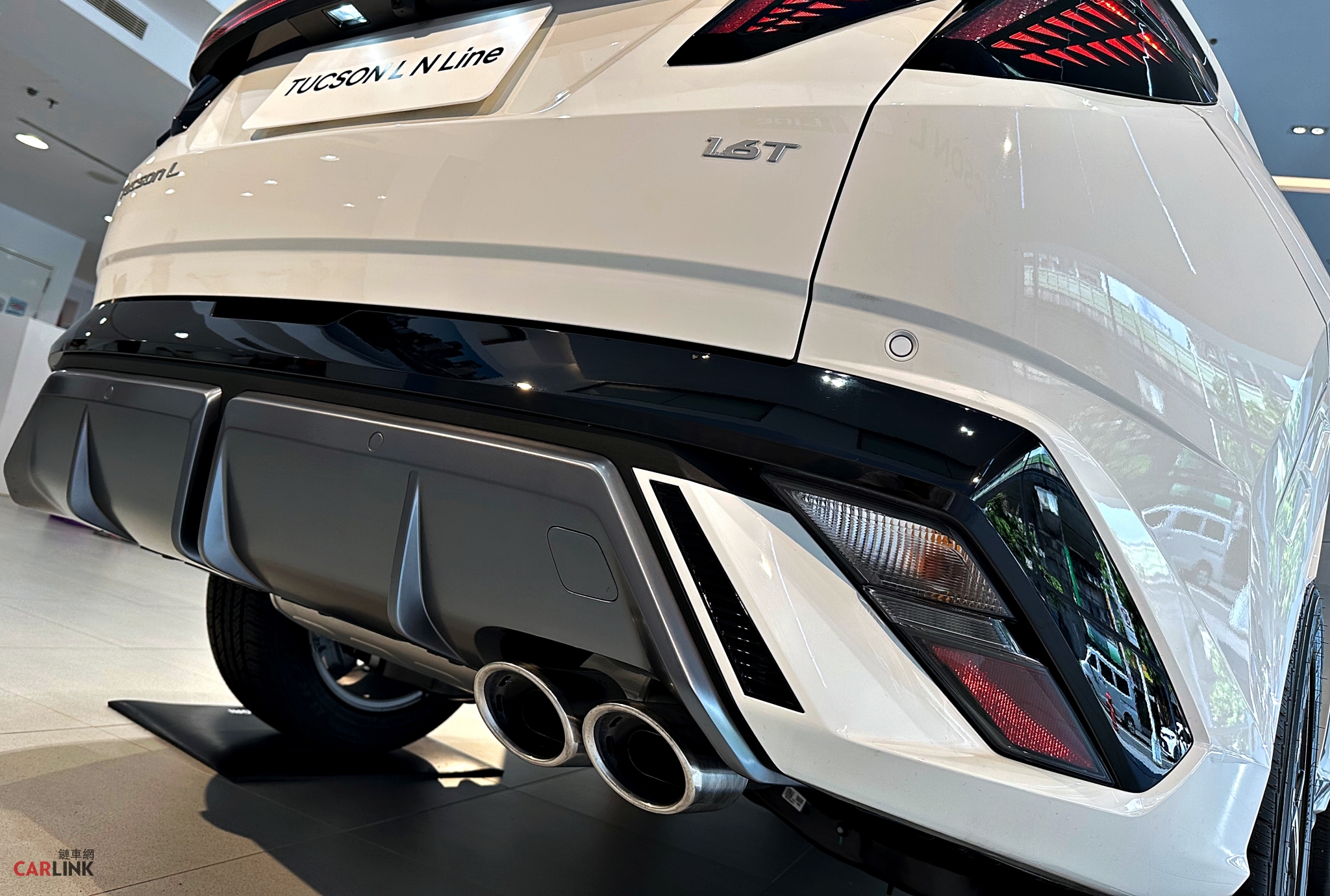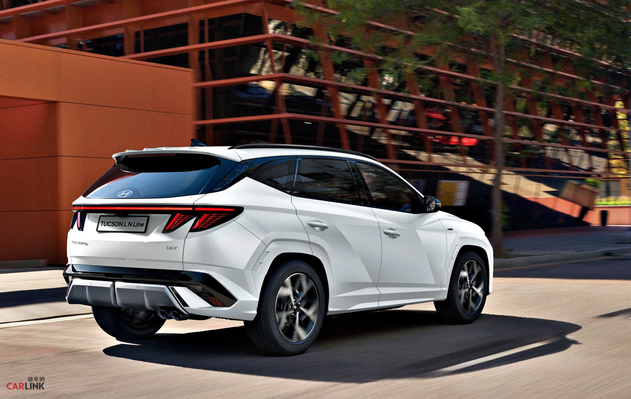 TUCSON L N Line以專屬外觀套件勾勒出與眾不同的運動跑旅氛圍。19吋性能跑格鋁圈展現剛勁氣勢,黑化網狀水箱護罩則散發深邃冷冽的張力;車身同色的空氣力學下氣壩與空力分流後保桿,進一步強化低趴的動態視覺感,搭配雙出金屬尾管,散發蓄勢待發的爆發力。