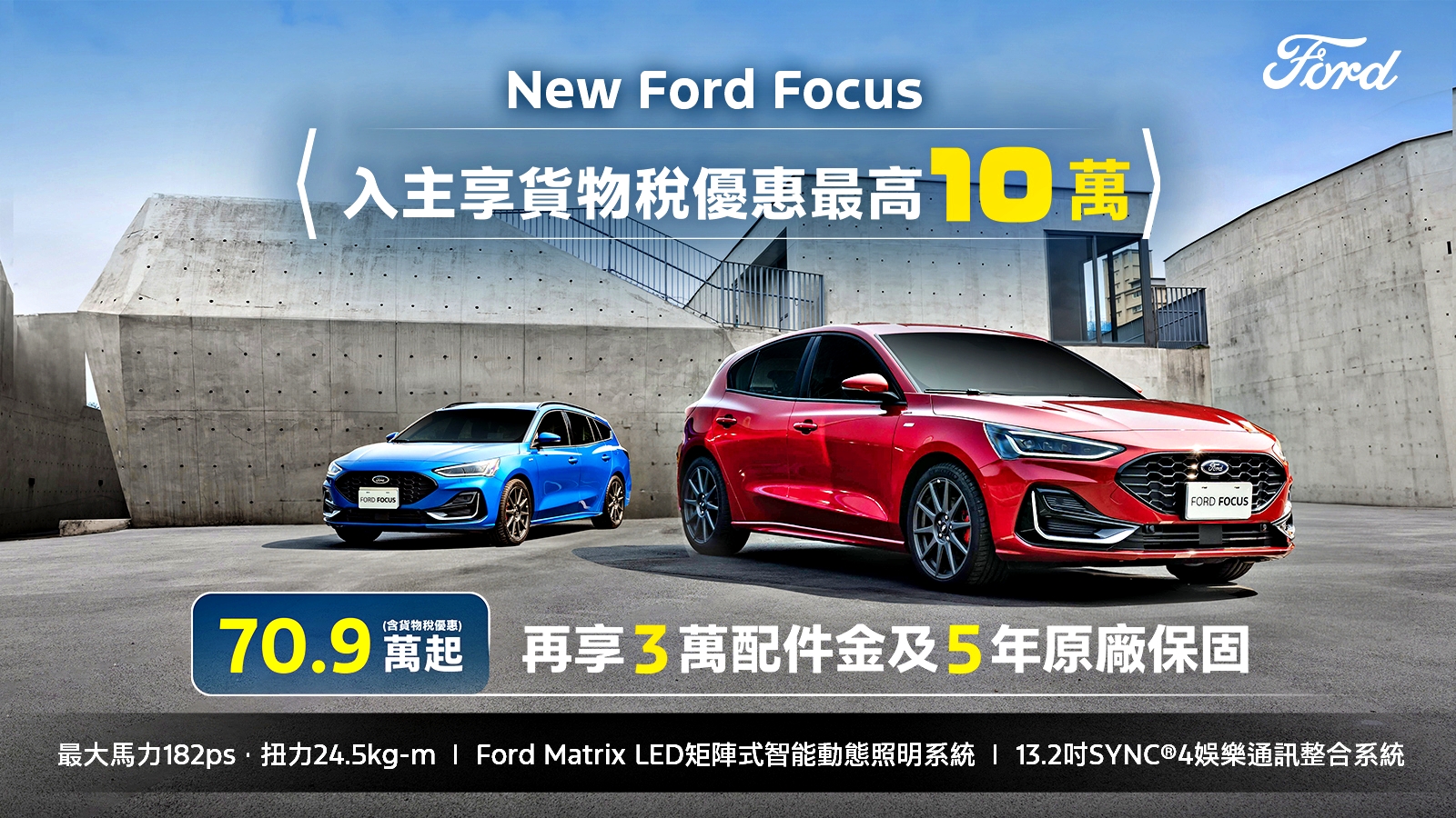 New Ford Focus享貨物稅優惠價70.9萬起,各車型享多重優惠!