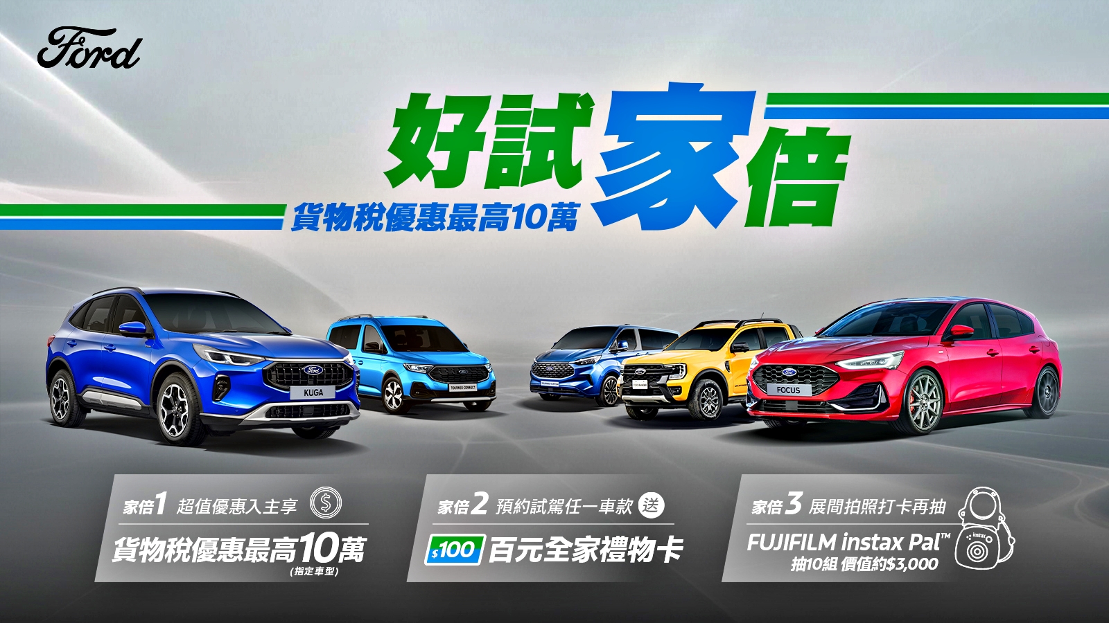 迎接光輝十月,福特六和祭出內容多元豐富的促銷專案,自2025年10月1日起至10月31日止,至全台Ford展示中心試駕任一車款,即可獲得全家百元禮物卡,於展示間拍照打卡上傳Ford(TW)官方臉書粉絲團指定貼文,就有機會抽中Fujifilm相機 。
