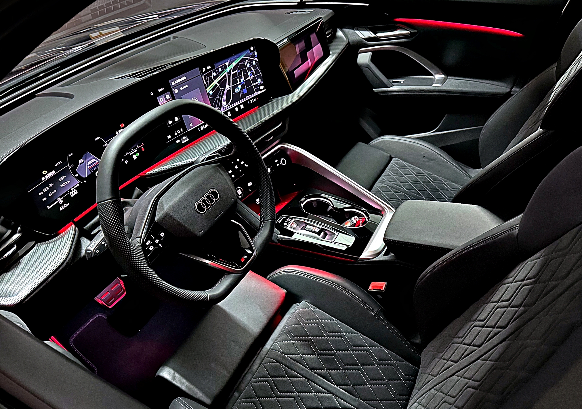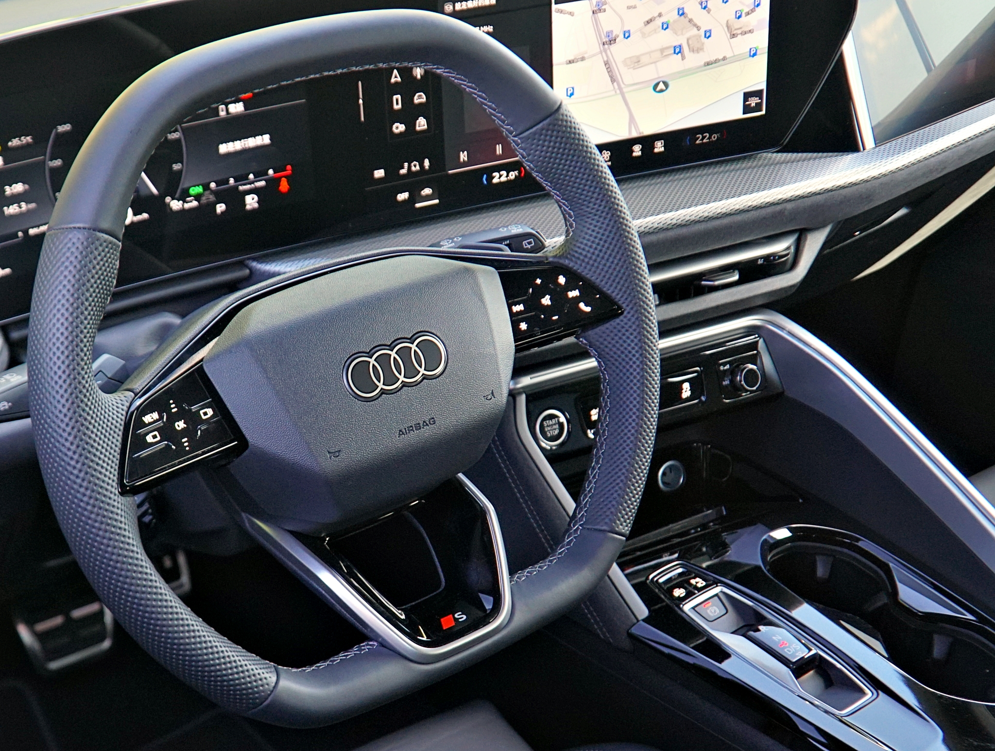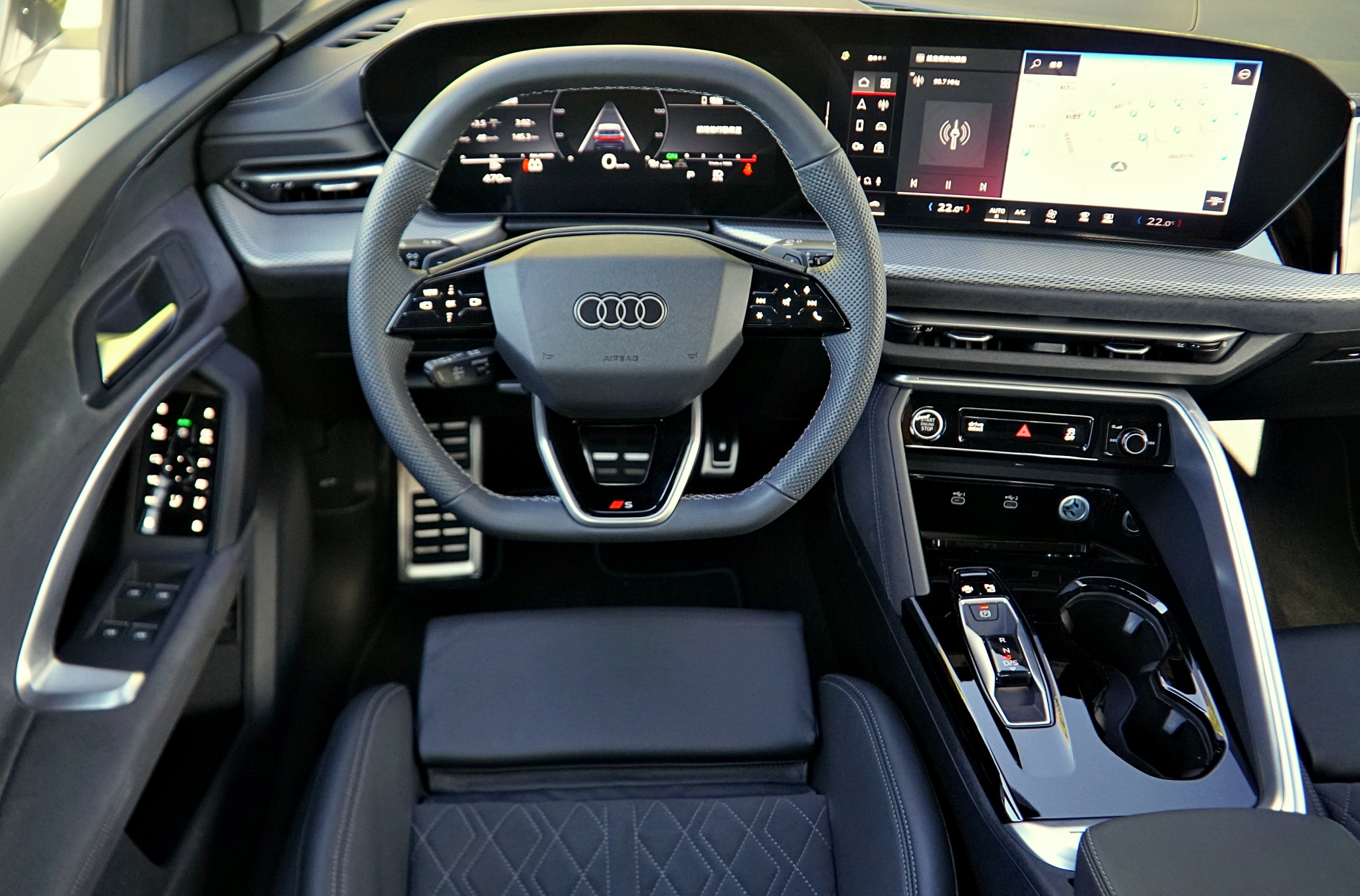 全新第三代Q5在內裝上進行大幅革新,配備被Audi稱為「Digital Stage」的數位座艙系統,中心為14.5吋的OLED曲面觸控螢幕,中控螢幕回應迅速,畫面細膩。儀表板採11.9吋Audi虛擬座艙,加上可選配的前座乘客10.9吋顯示幕(40,000元),三螢幕匯聚在駕駛艙內打造前所未有的數位科技感。雖然大面積觸控螢幕提升科技氛圍,但部分操作仍偏向學習曲線,需要適應。