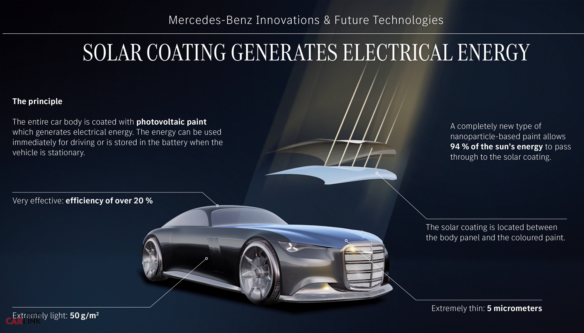 採用全新納米粒子太陽能漆層,可透過吸收太陽光提供額外動力,理想狀態下每年可為電動車提升約12,000公里的續航里程,且材質環保、可回收,避免使用稀有金屬,促進永續發展。