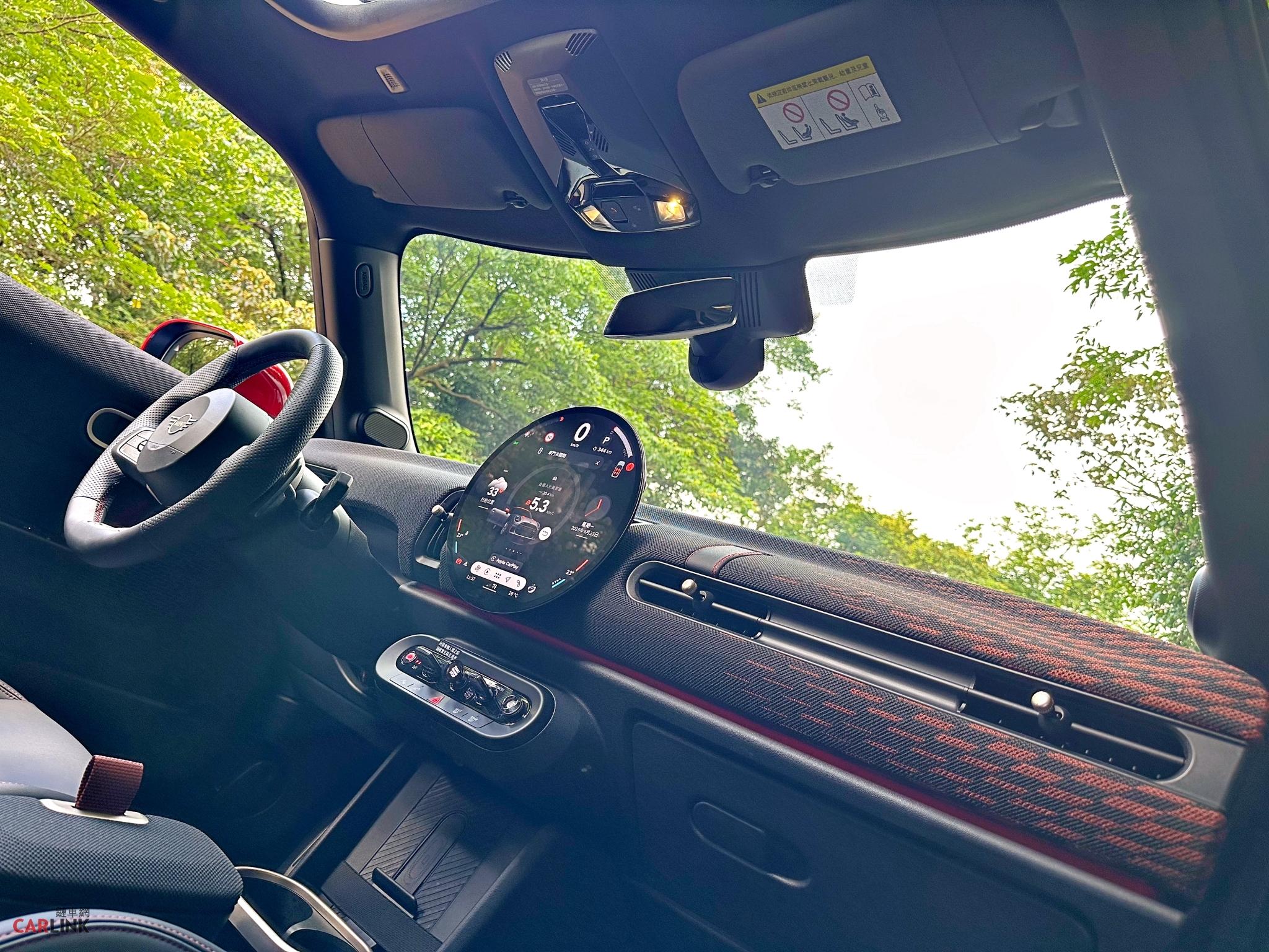 這代JCW在科技裝備上也絲毫不吝嗇。車上配備了「12個超音波感應器+4個環景攝影鏡頭」,可用於偵測交通狀況、保持距離巡航,並支援停車輔助。相較於早期僅強調性能而忽視科技、輔助的熱血車款,這裡顯示了Mini不止於在「玩」車,也照顧到日常便利與安全性。