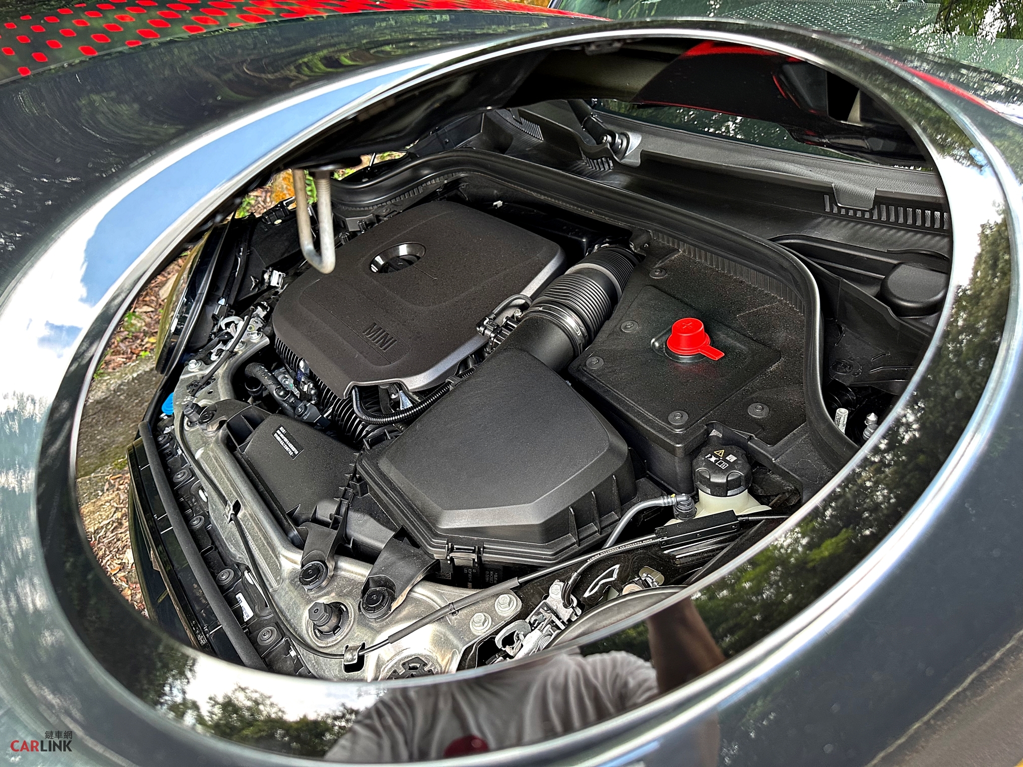 此代JCW採用與Cooper S相同的B48 2.0升TwinPower Turbo渦輪四缸引擎與七速雙離合自動變速箱,不過在JCW上,動力提升了27hp/8.2kgm:擁有231ps/5,000~6,000rpm最大馬力與38.8kgm/1,500~4,000rpm的最大扭力,0~100km/h加速為6.1秒。