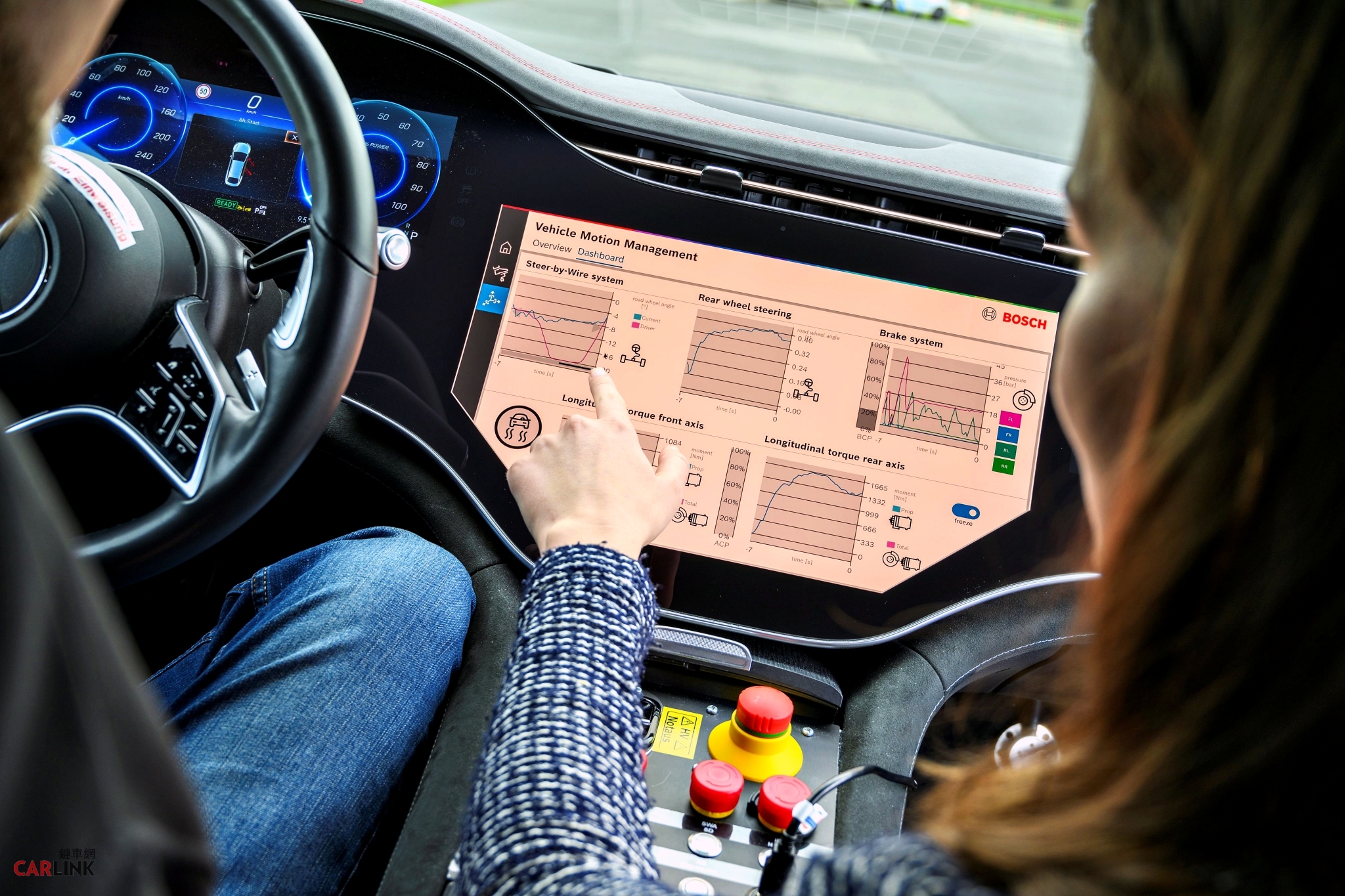 博世的車輛動態管理(Vehicle Motion Management)軟體,能中央控制煞車、轉向、動力系統及底盤,協調所有車輛動態。防暈車軟體功能:Vehicle Motion Management 的 Comfort Stop 功能可提升舒適度並減輕旅途中產生的暈車感受。透過煞車與電動馬達的互相配合,可將煞車時產生的頓挫感降低 70% 至 90%,並使車輛平順地停下。