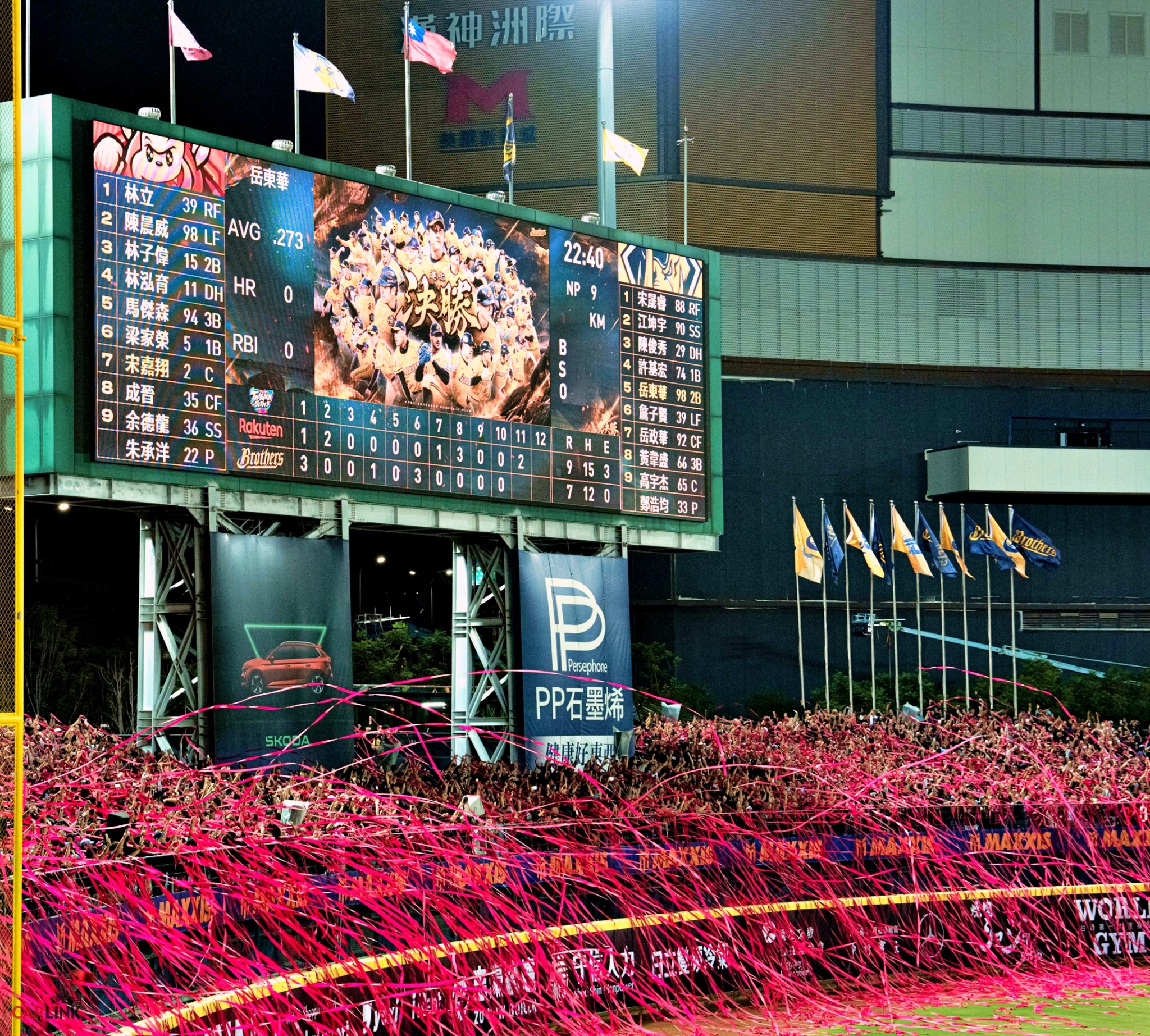 2025台灣大賽現場氣氛沸騰,球迷齊力拋出勝利彩帶,共同見證球季最高潮時刻。Škoda持續以實際行動支持國球,與全台球迷一同迎接榮耀。