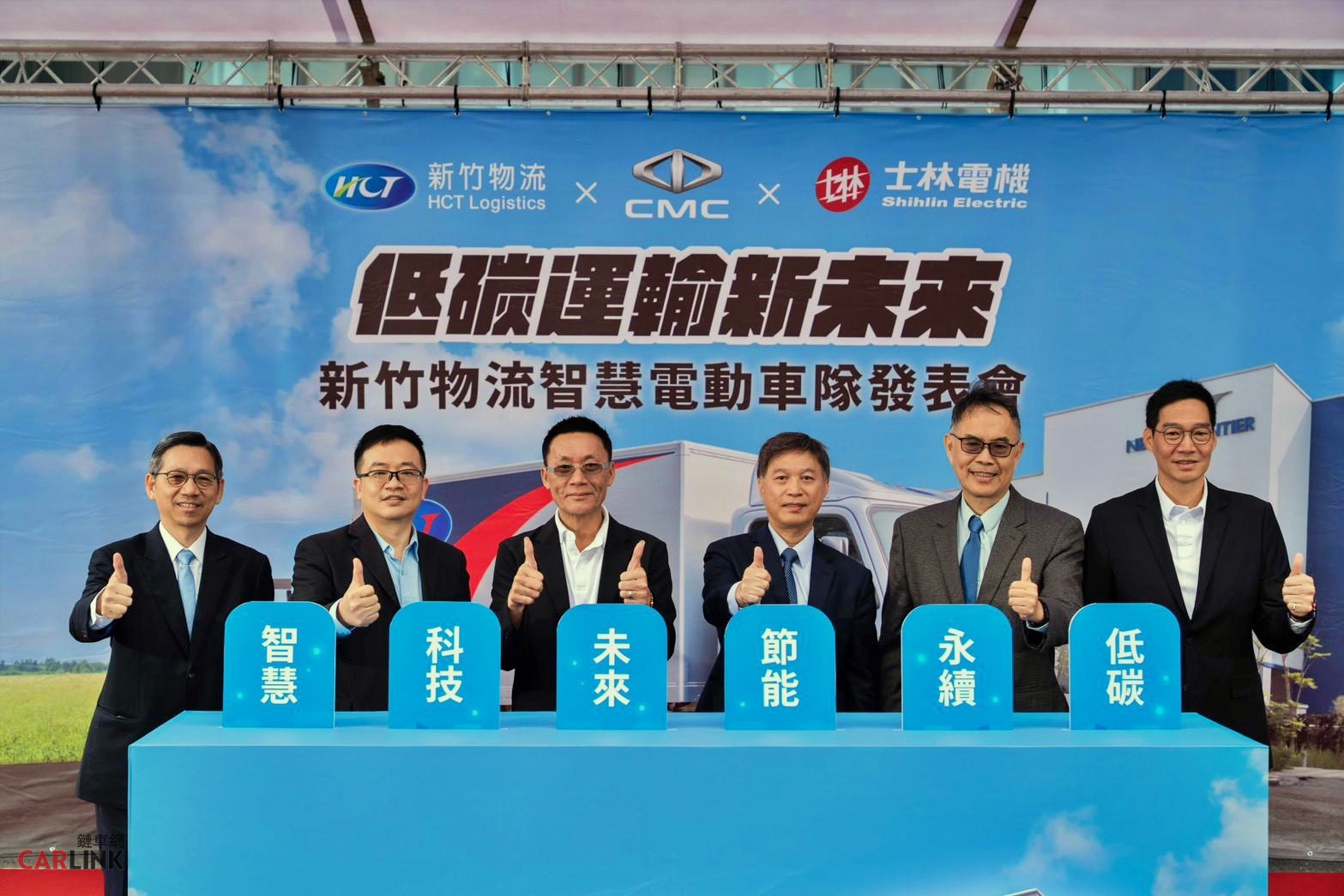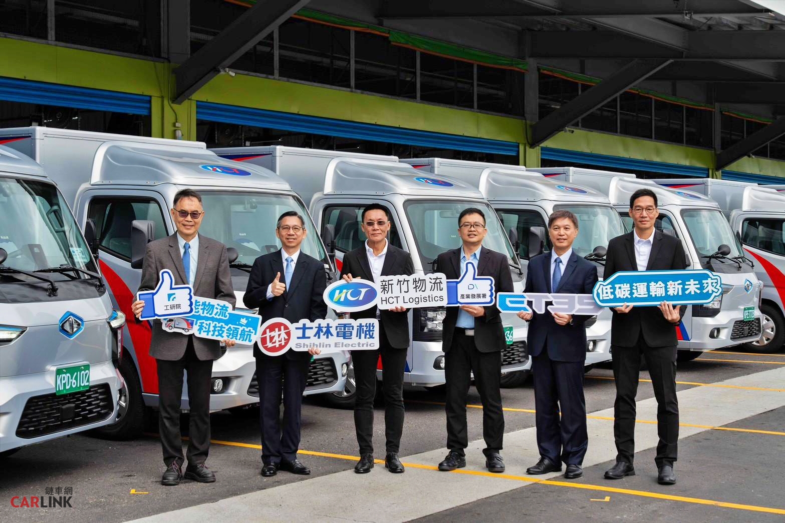 低碳運輸新未來─新竹物流智慧電動車隊發表會,邀請經濟部產發署董建強簡任技正、工研院張念慈組長、士林電機郭約瑟總經理、中華汽車曾鑫城總經理,共同參加啟用儀式。