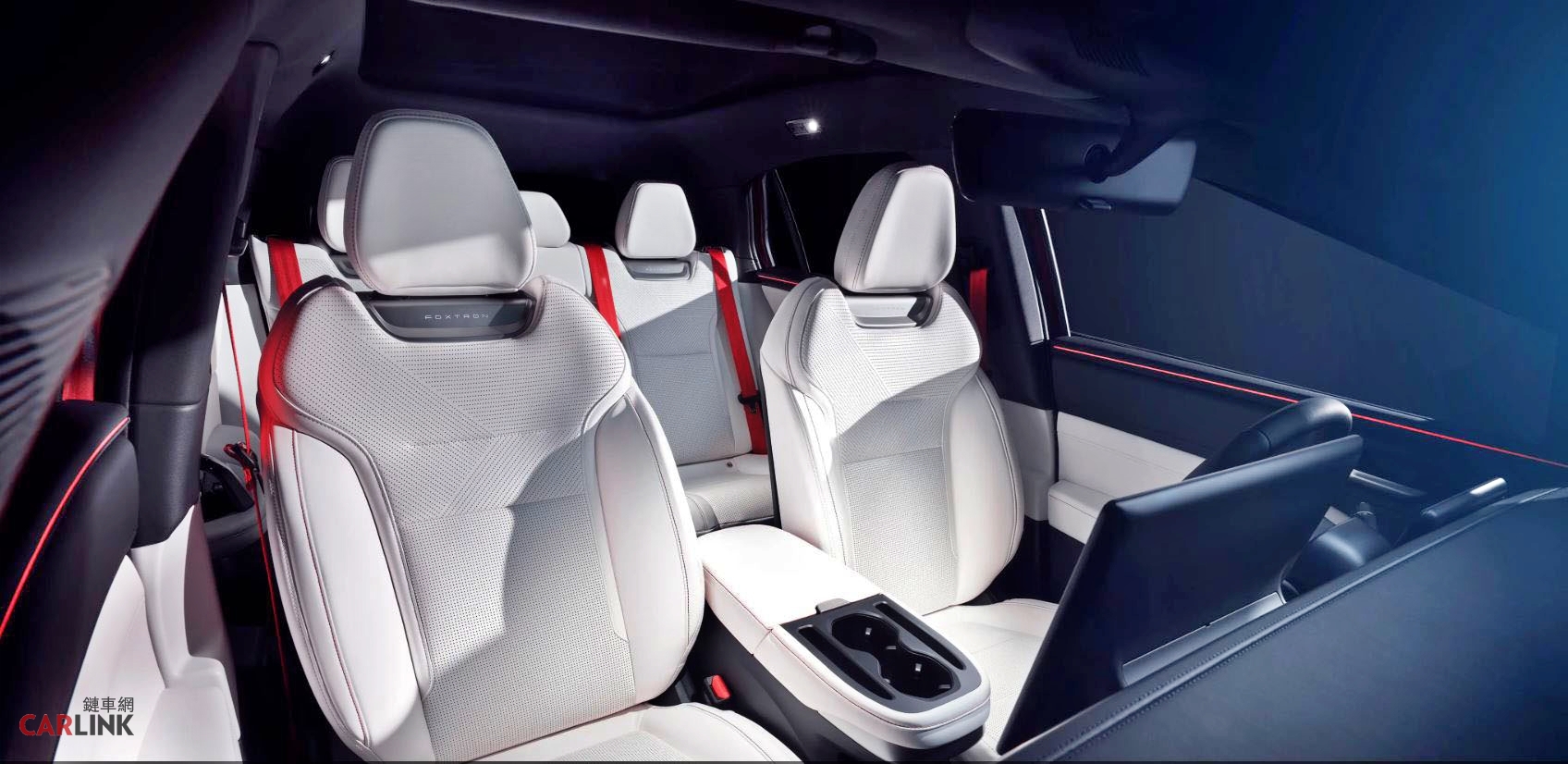 座椅運動化設計,四驅版獨享紅色安全帶,Emerge 起標配雙前座通風、後座出風口與USB埠,TomTom繁中導航提供雲端路況與剩餘電量預估;而Pioneer四驅車型:最大動能400hp/60.2kgm、0-100km/h 3.9 秒、NEDC續航466km、紅色安全帶、四獨立懸吊。內裝色選黑/白主題,電控出風口與UWB數位鑰匙提升便利。