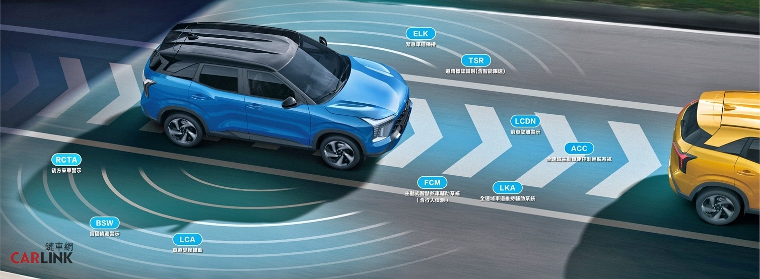 安全始終是 Mitsubishi Motors的品牌核心價值。XFORCE 搭載完整Level 2 ADAS 主動式安全駕駛輔助系統,包含 ACC 主動車距控制巡航、FCM 主動式智慧煞車輔助(含行人偵測)、LCDN 前車駛離警示、LKA 車道維持輔助、LDP 車道偏移輔助、LDW 車道偏移警示、TSR 道路標誌識別輔助(含智慧限速輔助)及 ELK 緊急車道保持等多項功能,協助駕駛於各種路況下維持穩定行車表現,有效降低行車風險,提供車主更完整的主動安全防護。
