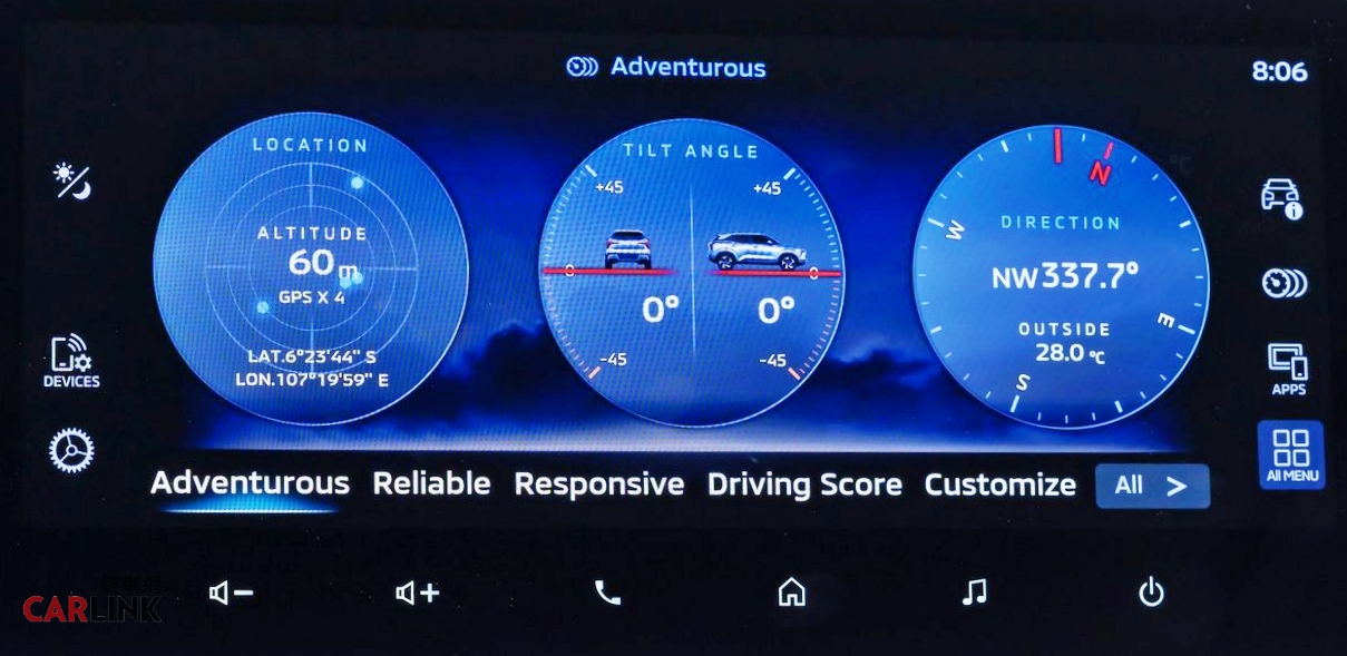 XFORCE 採雙螢幕科技座艙設計,整合 10.25 吋高解析度數位儀錶 與 12.3 吋中控顯示系統,提供清晰易讀的行車資訊與多媒體操作介面,並支援無線 Apple CarPlay與Android Auto智慧型手機連結功能,讓導航、通訊與娛樂操作更直覺流暢,而12.3吋中控螢幕內建經典的三環錶畫面,能顯示車身傾角、海拔高度等即時地形資訊。