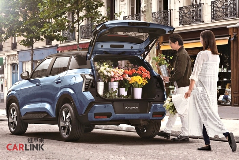 XFORCE以日常實用為核心,打造寬敞且高機能性的車室空間,車長 4,390mm、車寬1,810mm、車高1,660mm、軸距2,650mm,車室內部擁有優異的頭部與膝部空間表現,後座椅背支援4/2/4分離傾倒,能依照不同載物需求靈活調整行李箱空間,兼顧家庭出遊與日常採買。
