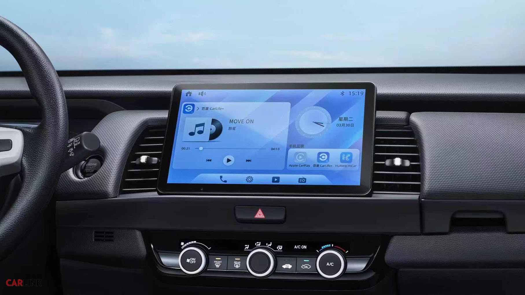 ▲小改款Fit採用全新10.1吋中央顯示螢幕,支援Apple CarPlay、HUAWEI HiCar和百度CarLife等手機系統無線連接。