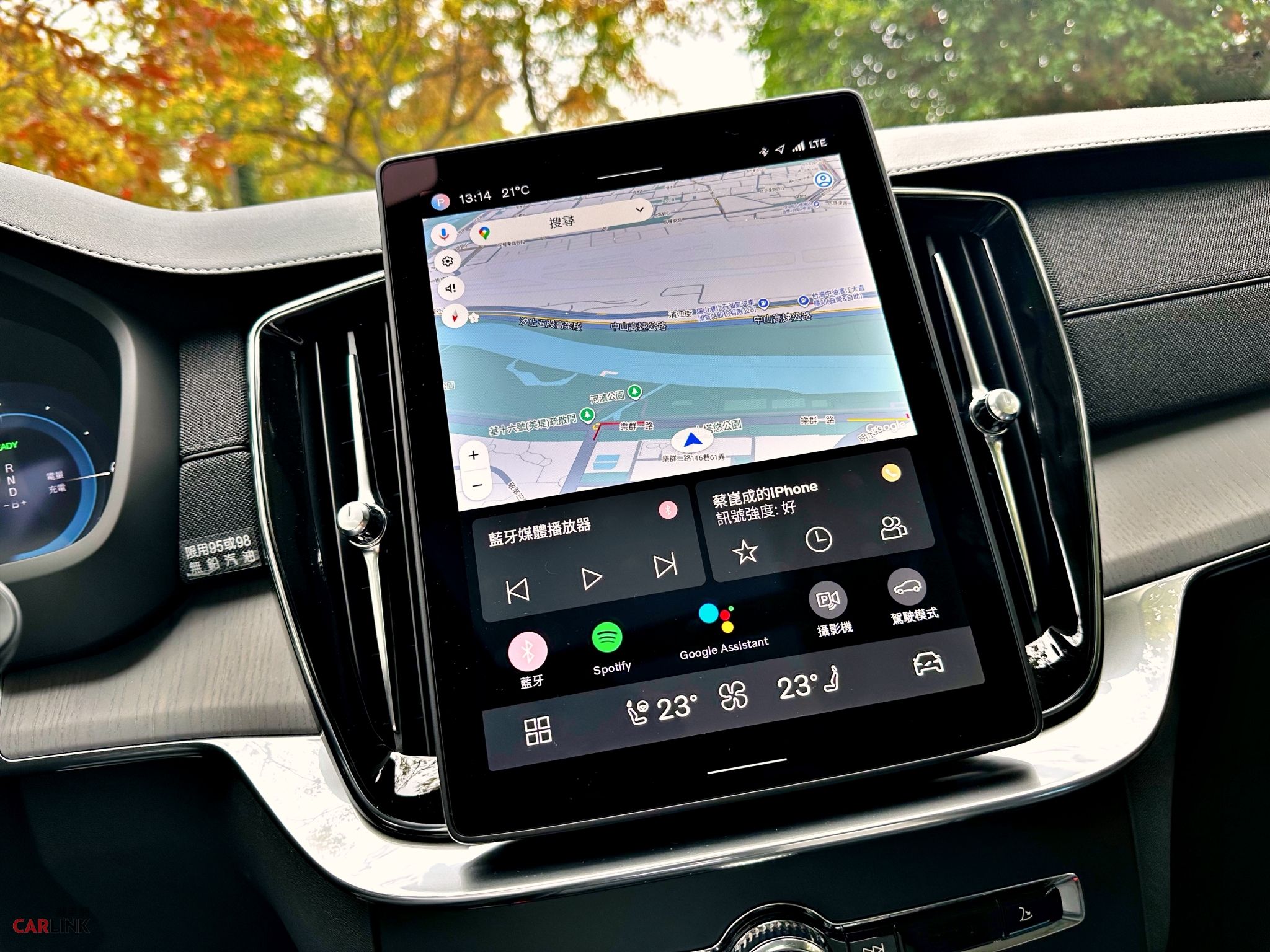 ▲系統同時整合常用功能捷徑,如駕駛模式切換、360°環景輔助攝影機、近期使用應用程式及Google語音助理,不論正在停車、行駛或通話,螢幕都會呈現當下需要的操作選項。