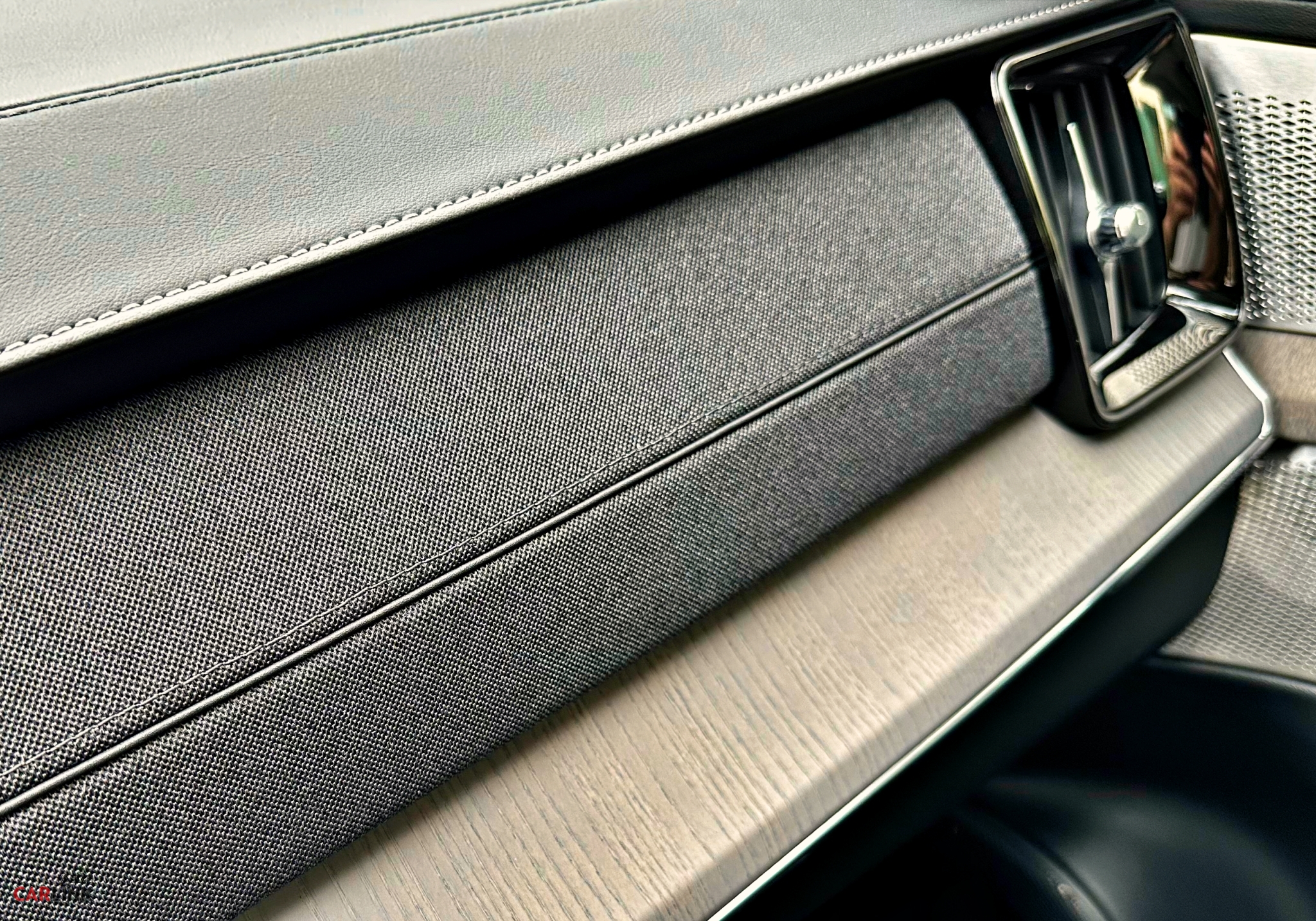 車艙內飾採用Nappa真皮與開放式實木面板,手工縫製工藝提升觸感質感。前排座椅具12向電動調整、通風加熱與記憶功能,後排獨立扶手與滑移,提供第三排七人座配置。試駕中,長途行駛時座椅支撐性維持良好,NVH(噪音、振動、粗糙度)控制優異,怠速噪音僅35dB。