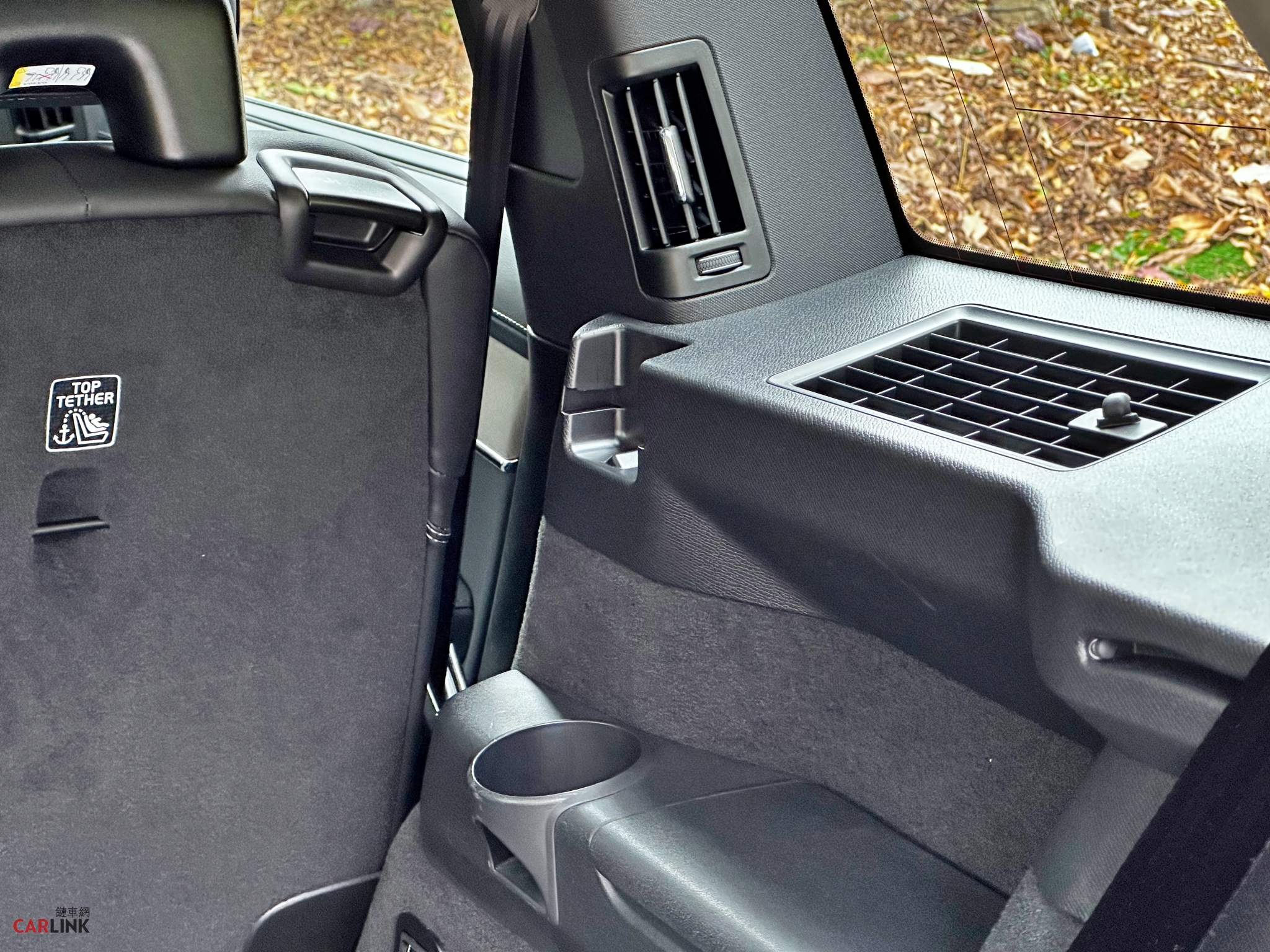 ▲第三排扶手與後側內飾板配備隱藏式收納空間,方便存放小件物品,前兩排乘客同樣享有寬敞的車門置物空間,足以容納一個1.5公升的瓶裝飲料。
