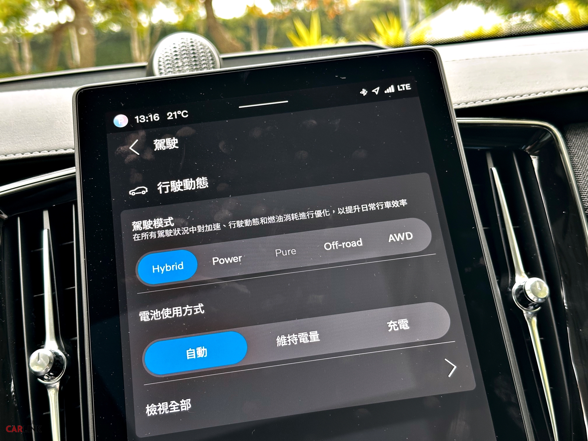 ▲五種駕駛模式可透過整合觸控螢幕中控台選擇適合當下情境的駕駛模式,並可直接切換,無需返回設定選單。