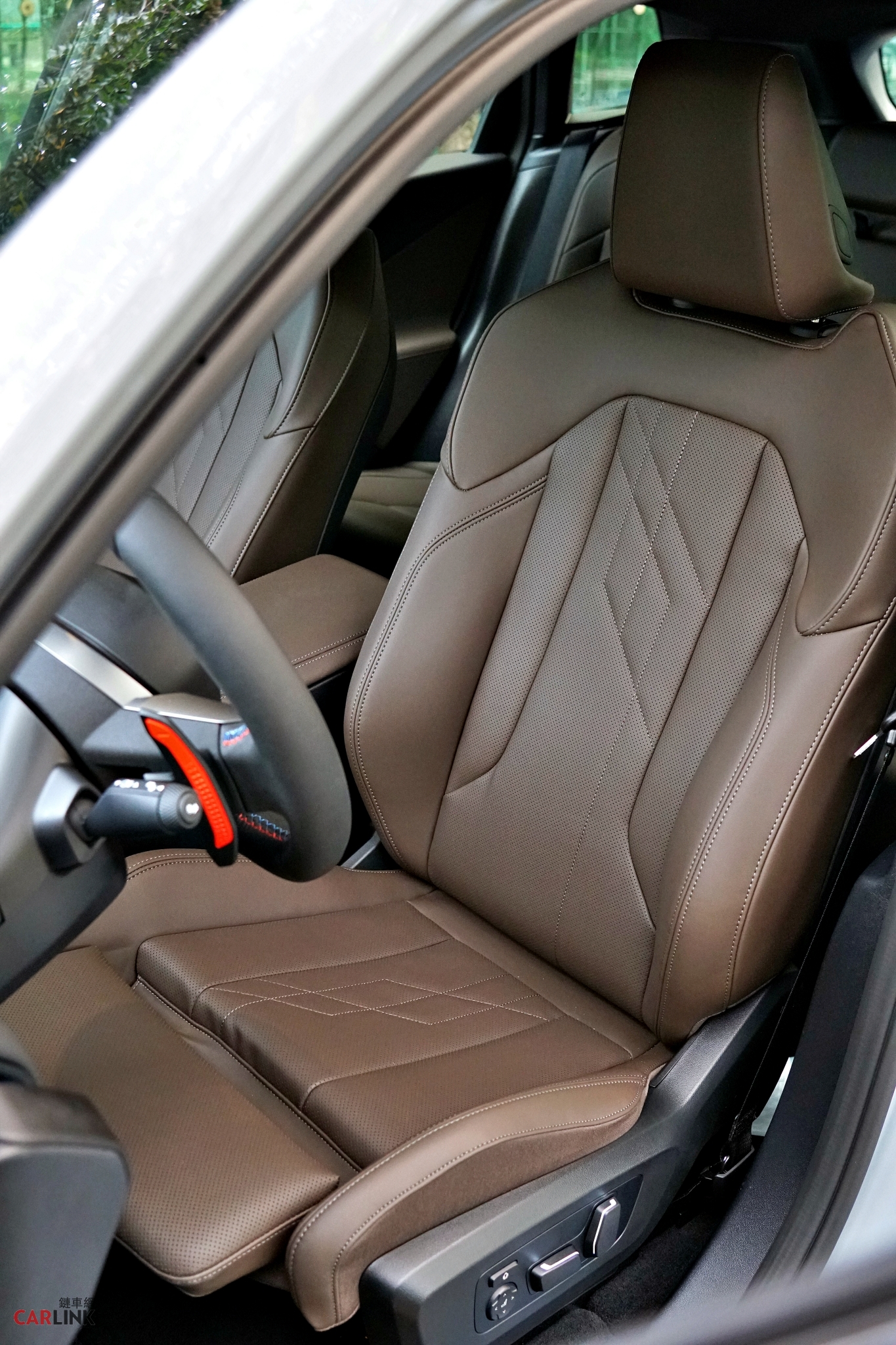 全車採用Veganza透氣皮質座椅,提供三款專屬配色選擇,搭配M鋁質刷紋飾板與M Nappa真皮平底方向盤含M Performance專屬縫線設計、霧面深灰色內裝飾條、黑色車內頂篷,細節滿載質感與運動性能味。