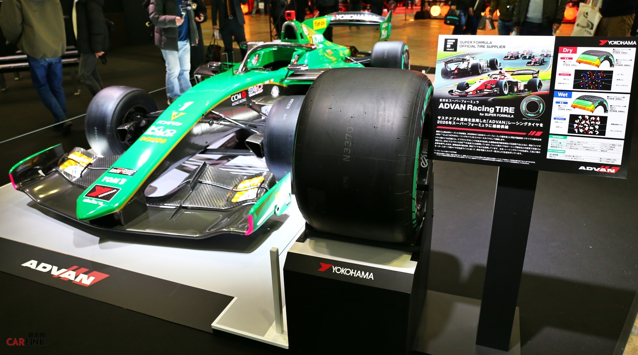 為了進一步證明產品在極限環境下的表現,現場更展出了多輛指標性參賽車與性能改裝車。其中,專為筑波單圈計時賽優化的ADVAN A050(A1配方)搭載於B-A-R常陽不動產RSC300賽車上,展現了極致抓地力與操控平衡。此外,現場唯一的SUPER FORMULA賽車VANTELIN TEAM TOM'S SF23,則展示了採用可再生材料打造的ADVAN A005環保賽車胎,訴說著品牌在追求性能的同時,亦致力於地球資源的永續保護。