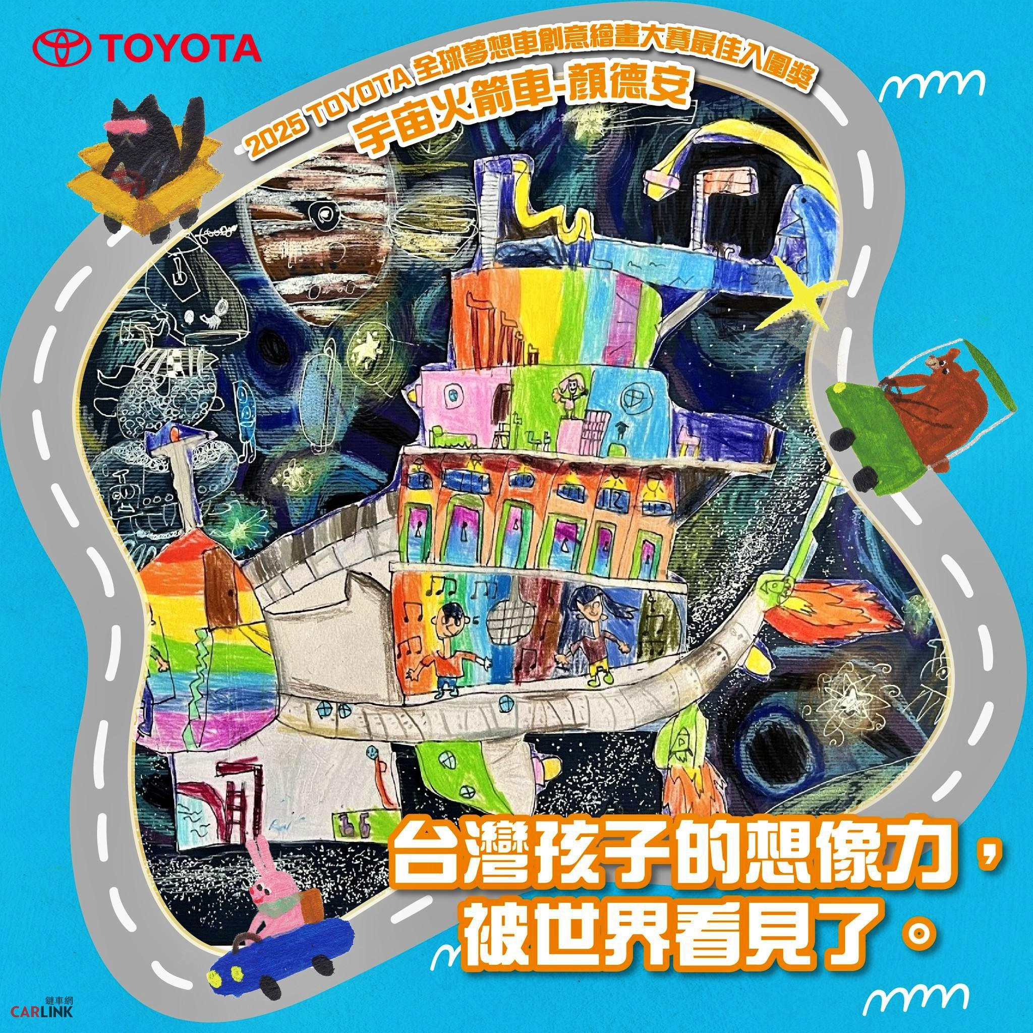 「2026 TOYOTA全球夢想車創意繪畫大賽」自2004年創辦,至今已來到第19屆,鼓勵學童以無限想像力描繪心目中的未來交通工具。現正進入倒數徵件階段,2/23(一)報名截止,TOYOTA再次邀請全台 15 歲(含)以下的兒童與青少年踴躍參賽,成功晉級世界大賽決賽並獲獎之得獎者個人可獲得5,000美元獎學金、得獎者學校則可獲得10,000美元的高額獎學金,入圍世界大賽之未得獎者個人亦可獲得3,000美元獎學金,鼓勵小藝術家們盡情揮灑自己的想像力,敬請把握時間踴躍參加! 在去年的熱烈迴響下,全台共超過2.5萬件作品參賽,更首次由兩位台灣學童在世界大賽中雙雙獲得「最佳入圍獎」,各獲得3,000美元獎學金,為台灣創下難得佳績。TOYOTA期望透過此賽事,不斷激發孩子的無限想像力,創造更美好的未來移動生活。