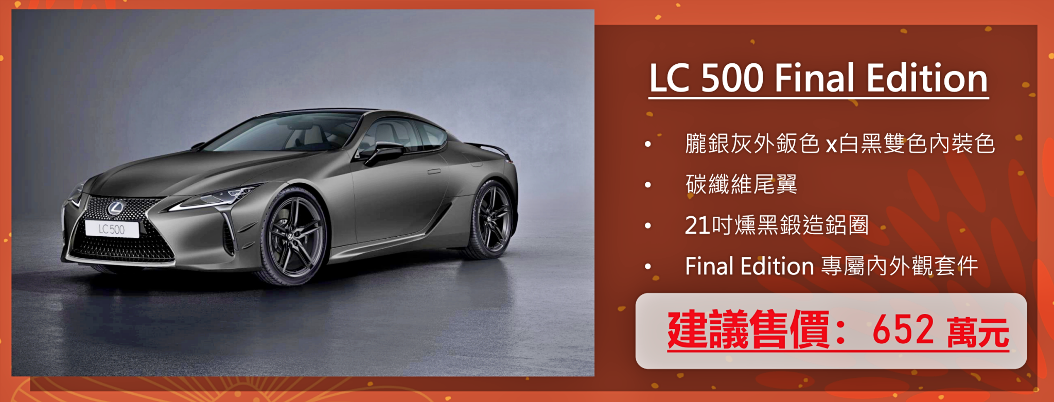 此外,和泰汽車也將持續推出多款新車,包含在台熱銷的TOYOTA COROLLA車系,將發表專屬配備及內外觀設計的60周年特仕車,獻給廣大車迷。Lexus則秉持Multi-Pathway的品牌策略,除了推出全球限量的LC 500及LC 500 Convertible的Final Edition,也即將導入新年式的UX 300h、大改款ES等多元動力商品,滿足顧客多樣化需求。