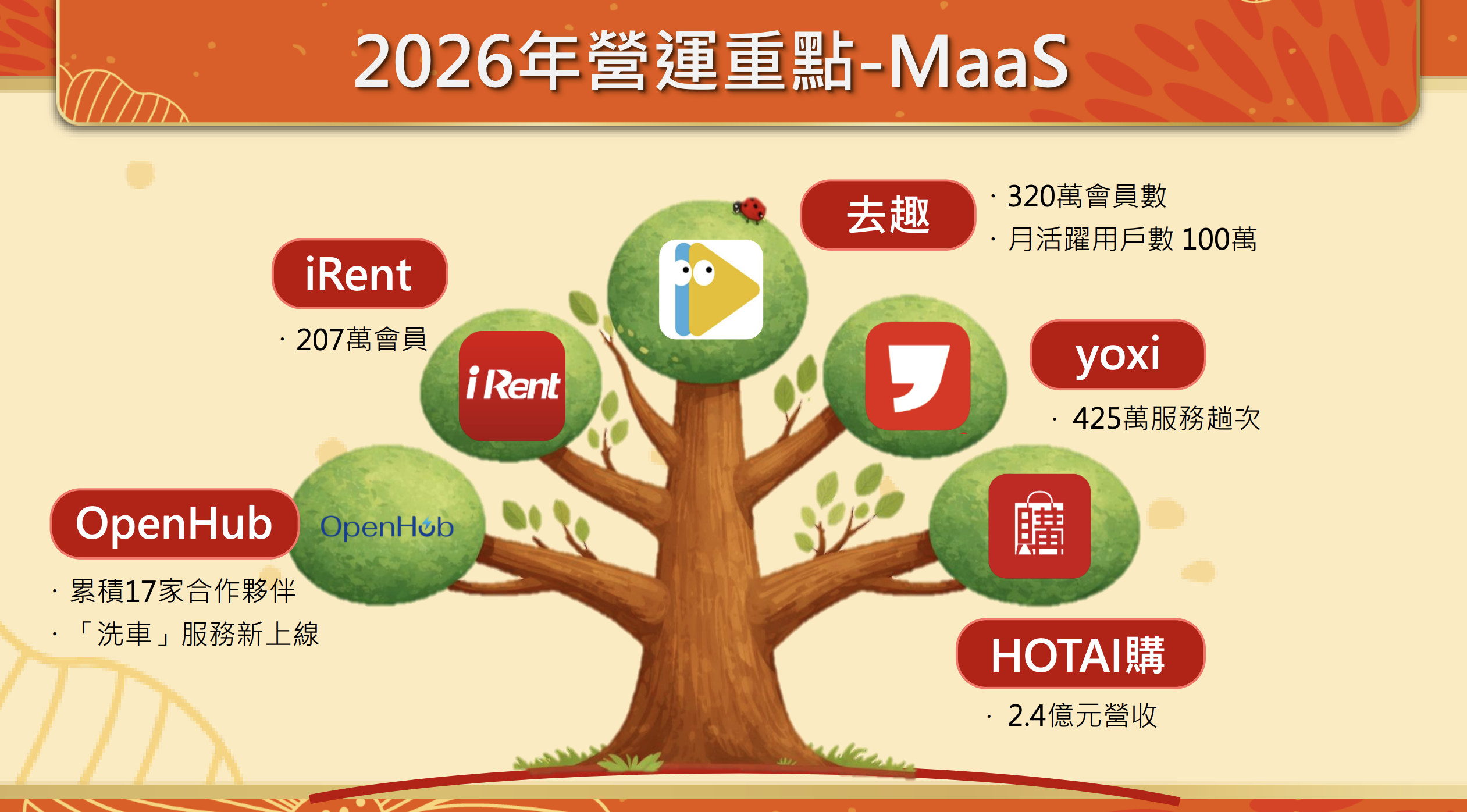 和泰不只是賣車,更積極轉型科技企業:平台進化:yoxi 導入數位平板支付,iRent 開放海外預約,去趣 APP 跨足日本市場 。AI 全域布局:推動「AI First」願景,提升顧客體驗並榮獲 IDC 數位賦能與商周 AI 創新獎項肯定 。和泰各大平台服務今年持續進化,展現 MaaS 事業的成長動能,打造完整的移動服務生態。「去趣」旅遊規劃APP日文版即將上線,透過日本在地經營,建立品牌心佔率;yoxi導入全新數位平板,提供多元金流支付;iRent開放海外旅客預約租車,打造安心便利的共享用車環境。