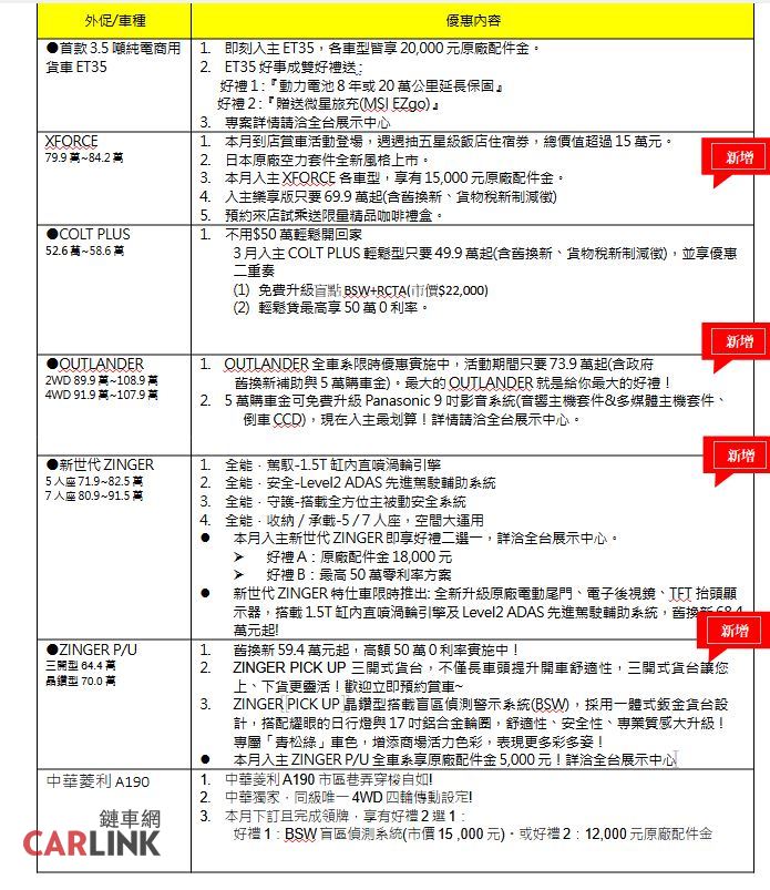 搭配進口配件上市,中華三菱自3/1起至3/31為止,於全台展示中心推出「解鎖 X 種無限可能」活動。消費者可透過中華三菱官方LINE進入線上互動遊戲(週週抽五星級住宿券活動: https://mitsubishi2026.webarfilter.com/ ),完成任務後至展示中心核銷參與抽獎。活動期間,週週抽出總價值逾15萬元之日月潭頂級飯店涵碧樓湖景客房住宿券,連續四週、每週抽出一位幸運得主,結果公布於中華三菱官方網站。完成試乘體驗亦可獲得限量黑沃咖啡禮盒,透過輕鬆的互動方式,讓賞車增加更多的有趣體驗,讓進店賞車的消費者,有機會將尊榮假期一併帶回家,活動不只強化消費者的進店體驗,更鼓勵實際坐進駕駛座,感受XFORCE的駕馭表現與車艙氛圍。