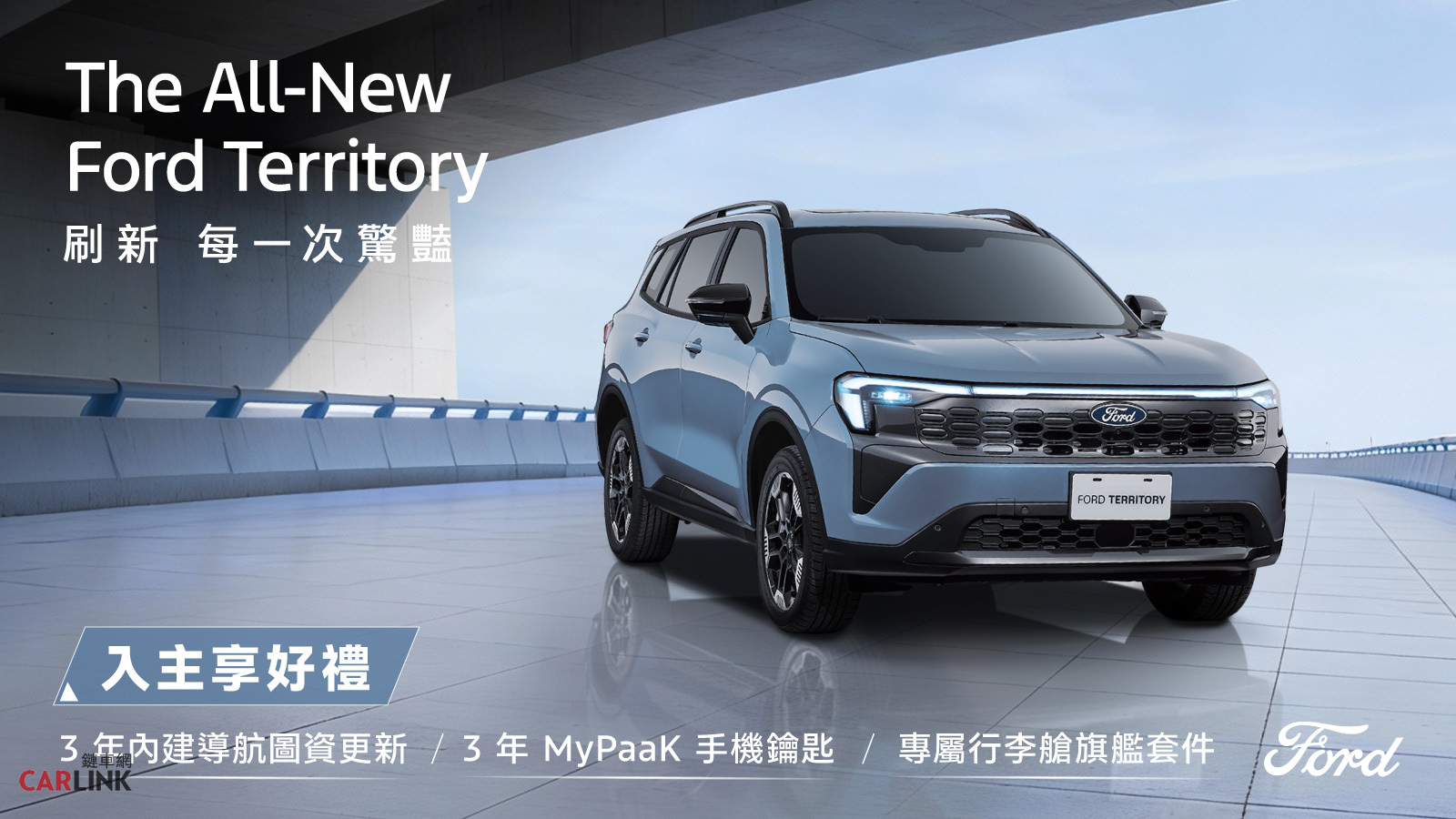 作為新世代家庭休旅代表,The All-New Ford Territory以智慧科技與高效動力為核心,重新定義日常移動的體驗標準。座艙設計導入雙12.3吋一體式懸浮車艙數位螢幕,其中全數位儀錶板搭載最新Vision Plus科技系統,結合全螢幕數位導航與Level 2駕駛輔助系統「三線道虛擬實境」顯示功能,可即時辨識多種車輛型態並清楚呈現路況資訊。娛樂與人車互動體驗同樣全面升級,12.3吋觸控螢幕支援三大娛樂系統Apple CarPlay®、Android AutoTM及CarbitLink,並搭配Ford AI中文語音助理,駕駛可直接透過語音完成多項車內設定,包括燈光、車窗與座椅通風等功能調整,使科技真正融入日常使用情境。The All-New Ford Territory提供1.5T Per4mance Hybrid四電驅渦輪油電動力及1.5T EcoBoost®渦輪汽油動力兩種選擇。油電車型綜效輸出最大245ps馬力、55.6kg-m扭力,平均油耗每公升達20公里、綜效續航里程破1,000km;汽油車型則擁有163ps馬力、25.5kg-m扭力,並配備多種駕駛模式包括標準、運動、節能與山路模式,帶來靈活且充滿樂趣的操控表現。在乘載機能上,雙前座提供雙色真皮電動座椅並附有通風座椅功能,而後座擁有同級唯一平整化地板設計,帶來更自在的乘坐空間與移動舒適度。以軸距2,726mm打造寬域車室,搭配多達22處置物空間,以及寬達1,150mm的後行李廂開口,更結合6/4分離式後座椅背與足踢感應電動尾門,無論日常通勤或假期出遊皆能靈活應對。安全方面則導入Ford Co-Pilot360™ Drive+全方位智駕科技輔助系統,包含領先同級的360⁰環景影像行車輔助系統(含AR底盤透視影像)、FAPA主動式停車輔助系統5.0與LRAS循跡倒車輔助等功能;同時,車體結構採用超過65%高剛性鋼材占比,搭配高強度一體式門框與八橫六縱車身結構設計,為家庭每一趟旅程提供更全面的守護。
