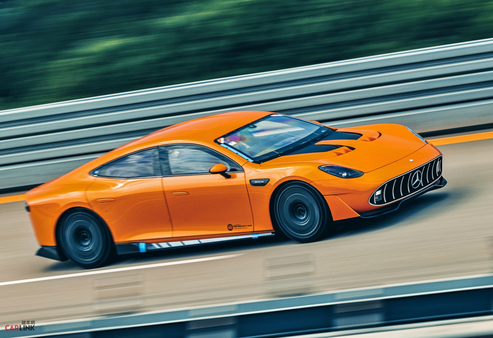 這部純電轎跑的靈感源自於先前創下紀錄、動力高達 1,341 匹馬力的 AMG GT XX 概念車。雖然量產版為了後座乘客的頭部空間微調了車頂曲線,但那種低扁、充滿力量感的肌肉線條依舊被完整保留。