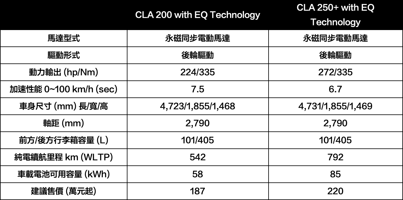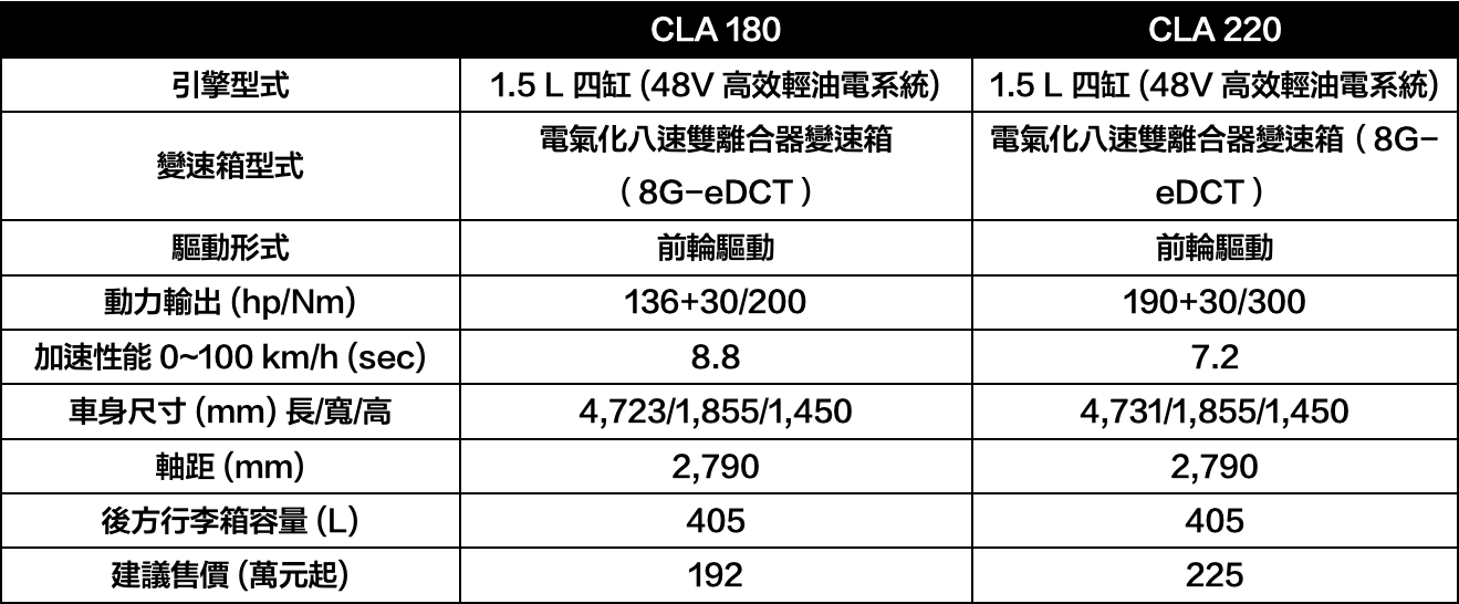 +全新 Mercedes-Benz CLA with EQ Technology 簡易規格表