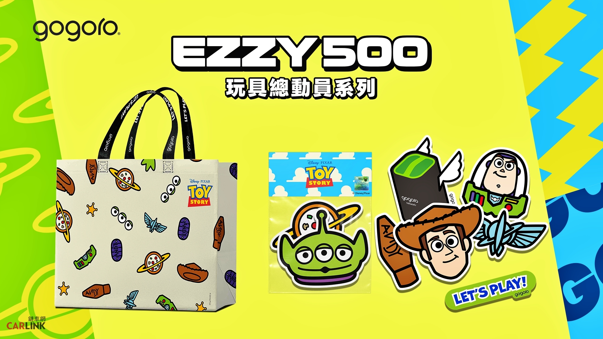 ▲ Gogoro 特別推出門市賞車好禮活動,至全台活動門市賞車並填寫問卷,即可獲玩具總動員主題購物袋及貼紙包。