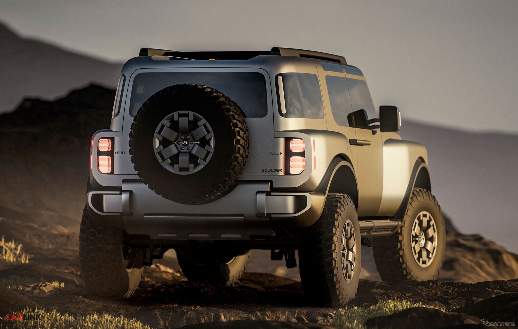 車身採用「液態鈦」塗裝,車頂具有固定式耐衝擊的越野風格車窗,確保車內有充足的自然光線和視野,對開式車門方便前後排乘客上下車。Boulder配備37吋泥地輪胎(37x12.50R18 LT),並於尾門安裝了一個全尺寸的備胎,增強其越野持續能力,尾門還配備電動後窗,方便裝載長條物品,並在行駛過程中提供通風功能。內裝採用高耐用性材料,並特別注重扶手等經常接觸區域的防護。控制裝置採用實體旋鈕和按鈕,即使在崎嶇路面上行駛也能輕鬆操作,此外還配備折疊桌,方便休息和戶外工作。雖然Boulder概念車僅是一款研究造型設計與功能的車型,其量產車可能一款皮卡而非SUV,但其非承載式車身結構和功能至上的設計理念,清晰地展現了未來Hyundai皮卡的發展方向。然而以此造型與功能來說,真的可以敲碗,直接打造成一款市售SUV吧!
