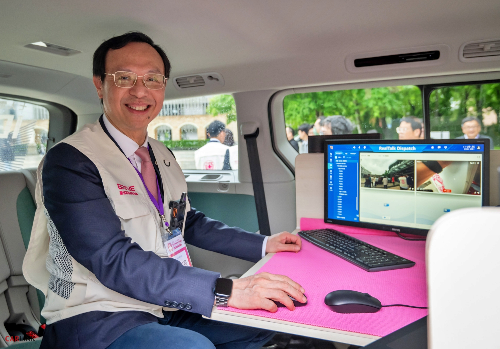 現場首度公開內建整合平台的 ID. Buzz 行動指揮車,能無縫跟隨進香隊伍移動,即時接收病患求救定位並迅速執行派遣調度,展現前進指揮所應有的實戰力和機動性。台灣福斯商旅總裁巫詩棻(Julia Wu)表示:「福斯商旅在緊急救護與行動福祉領域已深耕近 20 年,始終是使用單位最安心的後盾。今年我們非常榮幸能集結各界頂尖夥伴,讓全台唯一的純電正七人座電旅 ID. Buzz 憑藉其充裕的空間與節能優勢,化身為進香途中的行動指揮中心。ID. Buzz 智慧醫療隨扈將守護每一位香燈腳,讓這段信仰的旅程在溫暖科技的陪伴下,平安前行。」