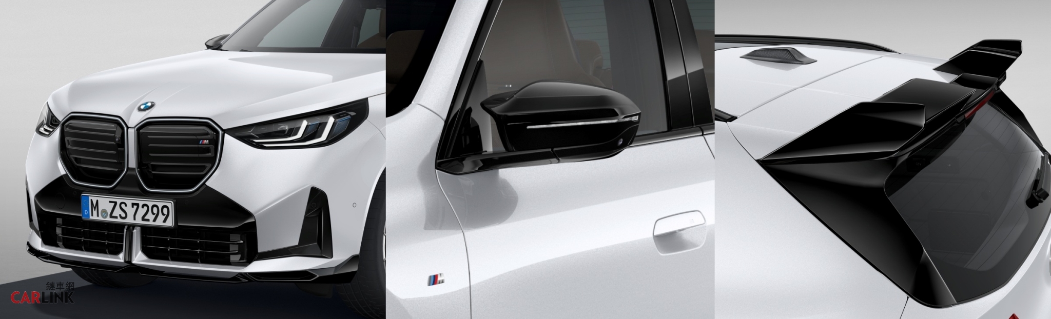 「BMW X3 M Performance Parts探索版套裝」內含M款高亮黑水箱護罩組、M款碳纖維後視鏡外蓋,以及M Performance高亮黑後擾流尾翼。透過高亮黑烤漆與碳纖維材質的精緻交織,細膩勾勒車身輪廓,將視覺焦點自然凝聚,於日常駕馭之中低調展現不凡氣場。探索版套裝不僅強化車頭與車尾的動態張力,更藉由空氣力學元素的巧妙點綴,進一步襯托全新X3兼具精緻與力量的設計語彙。整體風格內斂卻充滿層次,為講究細節質感與品味格調的車主,打造專屬且獨一無二的個性座駕。