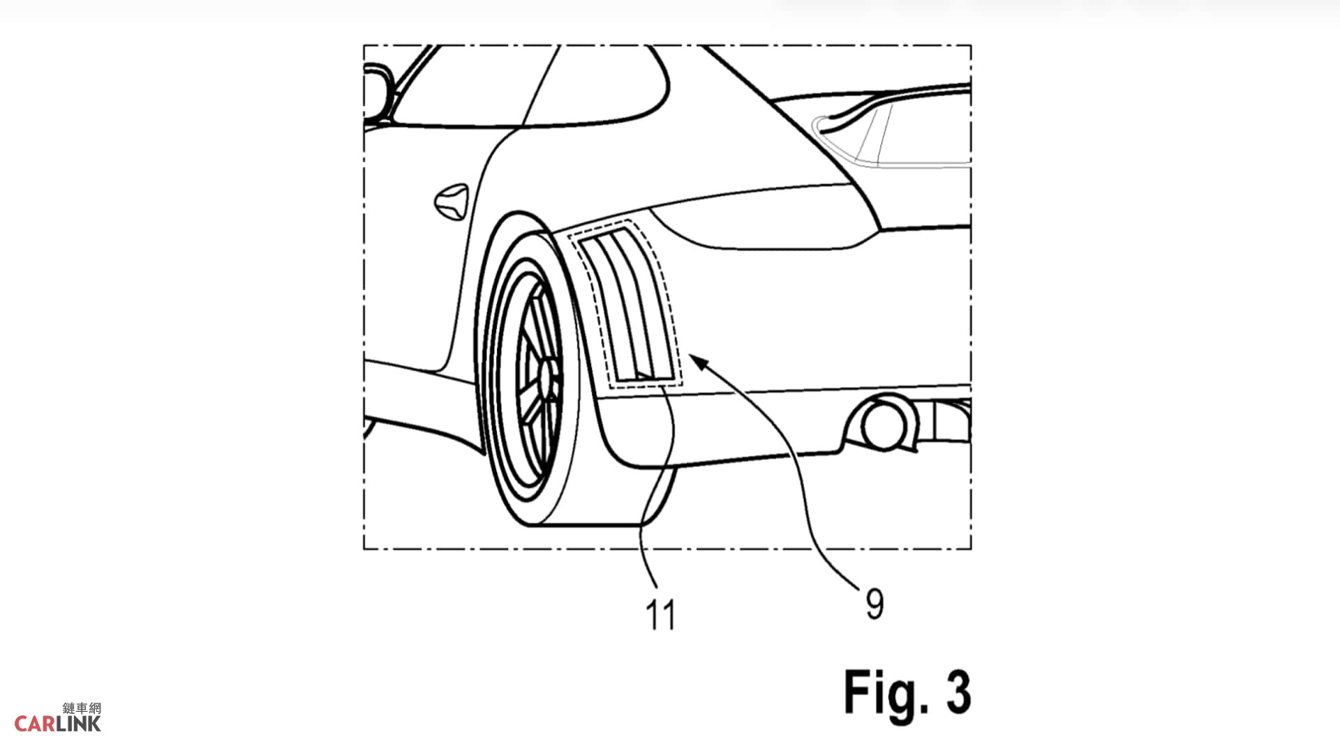 Porsche保時捷已申請一項「隱藏式賽車條紋」的新專利。這項技術在車身外部使用一種薄膜材料,保時捷稱之為「電子紙」或順磁性塗層,當施加電壓時,材料會改變顏色。該專利展示保時捷如何運用這項技術的幾種方式,包括尾燈旁與後下氣壩處,其中最引人注目的是「可消失的賽車條紋」。根據德國的專利申請文件,這些條紋可以根據車輛的駕駛模式改變顏色,例如綠色代表節能模式,紅色代表運動模式,或者只需輕按一個按鈕,條紋即可完全消失。圖片也展示了將此薄膜應用於後輪後方和後擴散器上的條紋圖案。該專利還描述了將這項技術應用於電動車,以便在車身外部直接顯示車輛的充電狀態。