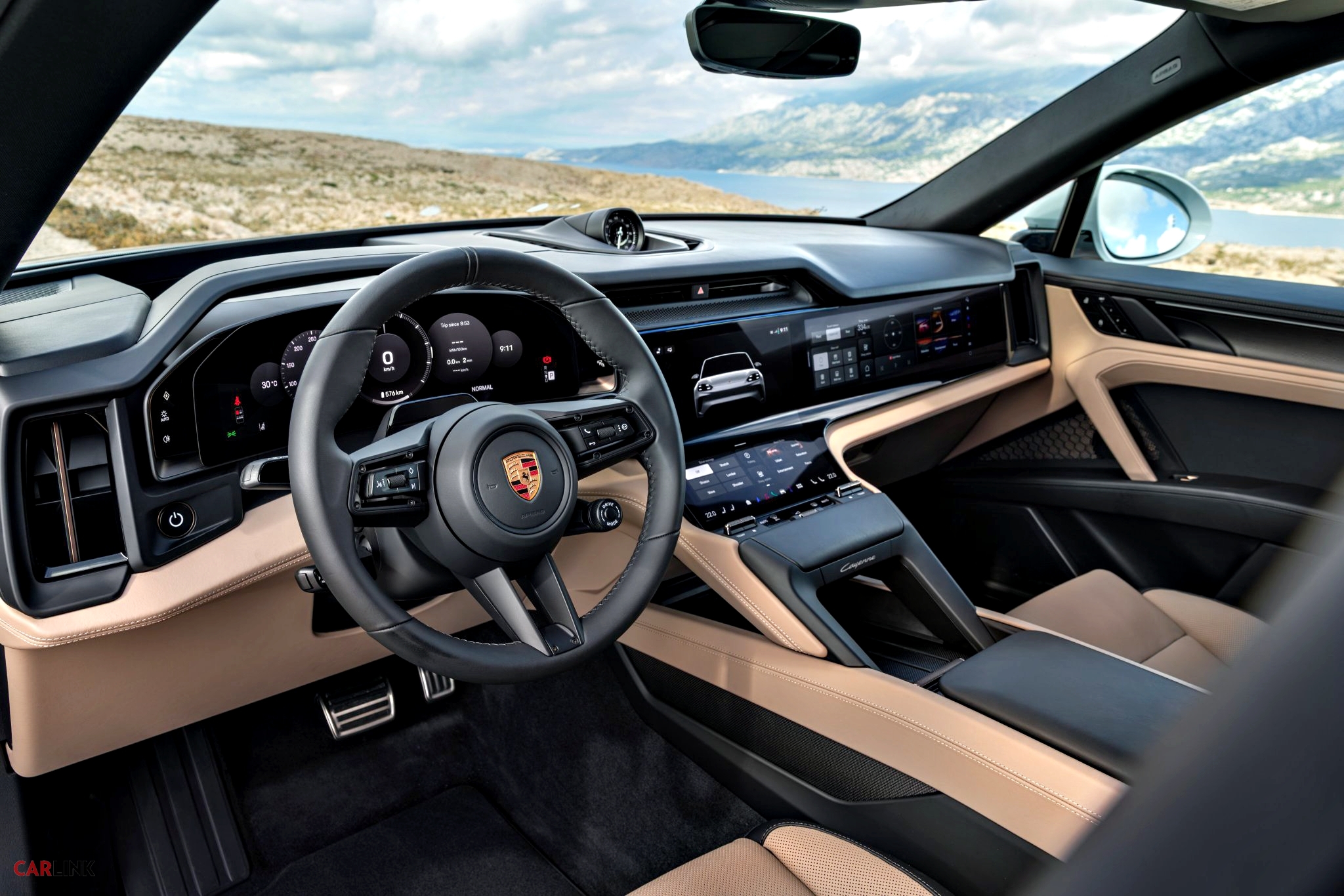 Cayenne Coupé Electric 承襲 SUV 車型的「保時捷駕駛體驗(Porsche Driver Experience)」設計,提供數位化且以駕駛為中心的操作概念。其特色在於寬闊的顯示區域,包含純數位儀錶板、中央整合式懸浮螢幕(Flow Display),以及列為選配的副駕乘客螢幕與擴增實境(AR)抬頭顯示器。數位與類比控制介面相輔相成,並經過人體工學優化以提供最直覺的操作體驗。透過「保時捷數位互動體驗(Porsche Digital Interaction)」,系統高度聚焦於個人化與直覺操作。可客製化的個人小工具、可自訂的螢幕主題以及第三方應用程式的無縫整合,共同打造出緊密互聯且可依個人喜好配置的使用者體驗。